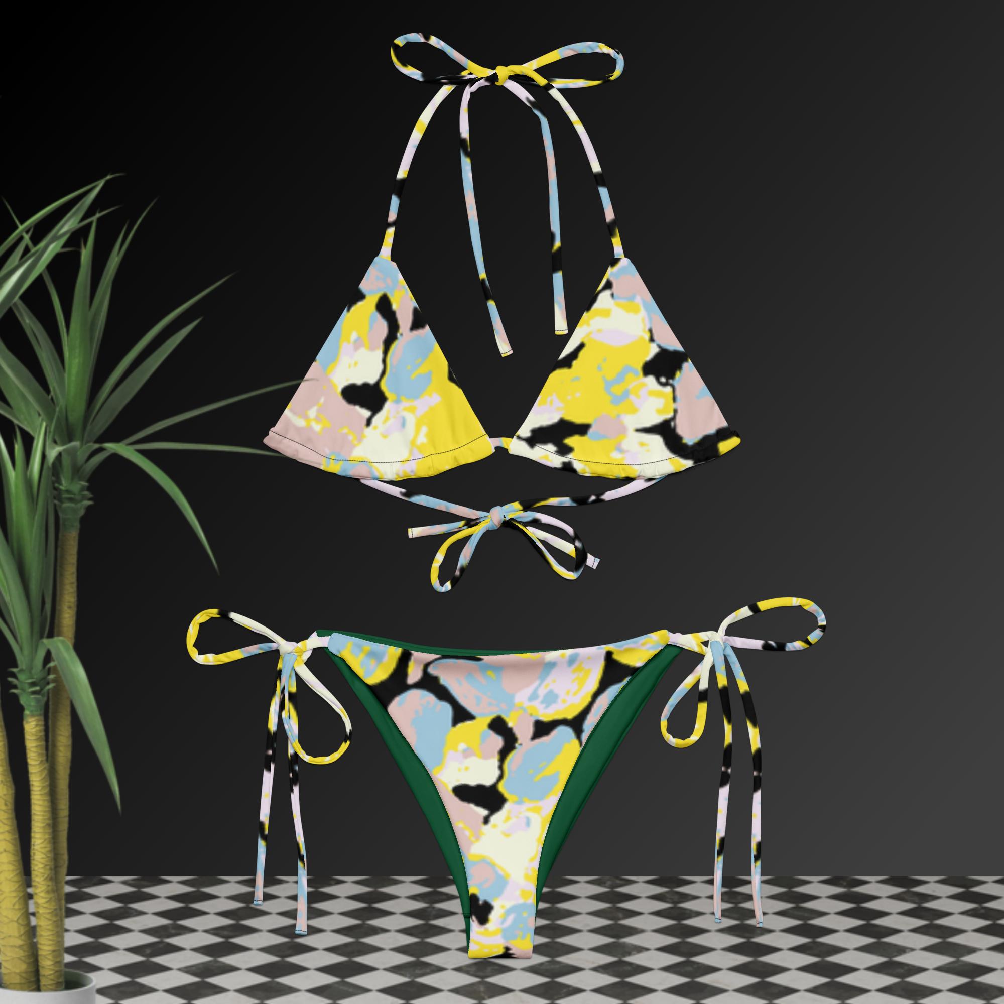 • To make your All-Over Print Recycled String Bikini last longer, thoroughly rinse it off after each use and get rid of any chlorine/salt residue.